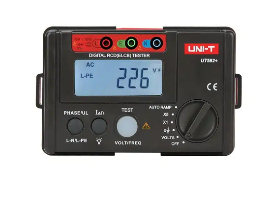 The UT582+ is mainly used to detect whether the RCD in the circuit can be triggered normally. It is only suitable for single-phase circuits with the supply voltage range of 195V~253V. Its voltage measurement range is 30V~600V, 45Hz ~65Hz.
